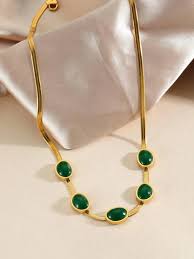 Oval Green Crystal Pendant Necklace Set With Bracelet